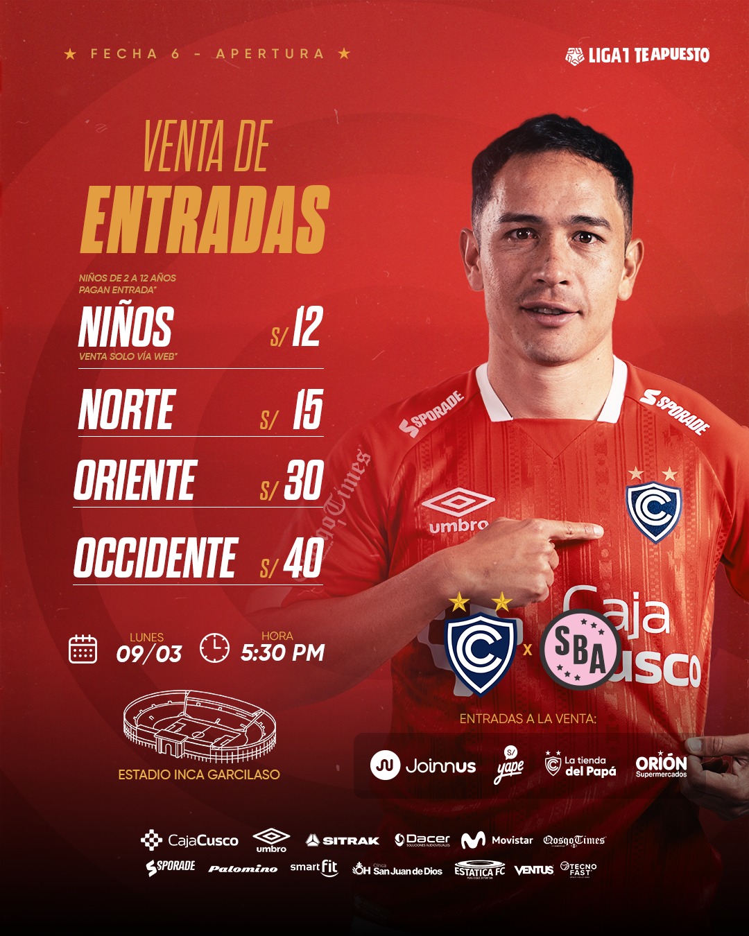 Anunciamos el inicio del proceso de acreditación para el partido entre Cienciano y Sport Boys, que se jugará el lunes 9 de marzo a las 17:30 p. m. en el estadio Inca Garcilaso de la Vega, por la fecha 6 de la Liga1 Apertura.